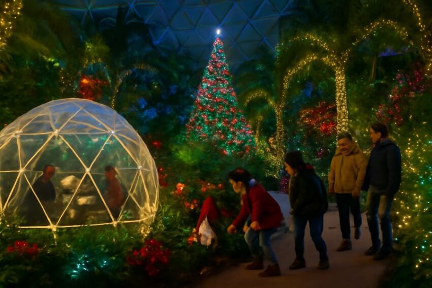 Dome for the Holidays isn’t just about admiring lights – it’s about experiencing the magic firsthand. One of the standout features of the event is the annual gnome hunt. This beloved activity encourages visitors of all ages to explore the garden while hunting for cleverly hidden gnomes. It’s a delightful scavenger hunt that sparks the imaginations of children and adults alike, making it a perfect family-friendly activity. As you wander through the garden’s festive surroundings, you can search for these whimsical gnomes scattered throughout the venue, adding a touch of adventure to your holiday outing.